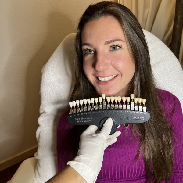 Voorafgaand aan de behandeling meten we de tinten van je tanden. Is de sessie van je behandeling klaar? Tijd om de tinten weer te meten. Zo kunnen wij precies vertellen hoeveel tinten witter je tanden zijn geworden.